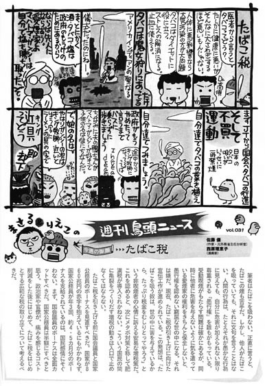 週刊新潮に連載中のコラム「週刊鳥頭ニュース」(平成21年12月17日号)に、作家・元外務省主任分析官の佐藤優氏が、鳩山民主党政権の暴政ともいうべきたばこ税値上げの動きに激しく警鐘を鳴らしていますので、愛煙家の方々にご紹介します。 民主党政権は反米親支路線を平然と嘯き、経済政策もまるでトンチンカン。戦後営々と築いてきた日本国の平和と繁栄を壊し始めている印象が否めない中で、たばこ税値上げのような些事ばかりを云々するのは本意ではありませんが、まさに些事だからこそ、この政権の危うい体質が鮮明に露呈したと言っても過言ではないでしょう。 私は、蘇連時代にモスクワに駐箚しておられた佐藤優氏に出張でお世話になったことがあります。当時、愛煙幸兵衛先生から「外務省の役人は御殿女中みたいな奴ばかりが幅を利かせているが、モスクワ大使館に佐藤優という端倪すべからざる異能の外交官がいる」とお噂を伺っていました。実際に現地で佐藤優氏にお会いしてその仕事振りを拝見し、外交官としての識見の高さと手腕の凄さに心の底から敬服するばかりでした。当時、佐藤優氏は外交官の身分としては最末端の理事官の境遇に甘んじておられましたが、帰国して愛煙先生に「我が国が北方領土問題を本気で解決しようと思うなら、佐藤優氏を7階級特進で駐蘇大使に起用すべきですが、身分制度に凝り固まった盆暗ぞろいの外務省だから所詮無理でしょうな」と慨嘆した記憶がございます。 さて、その佐藤優氏は、その後、鈴木宗男代議士にその抜群の能力と手腕を認められ、腹心として重用されるようになり、その結果、ポピュリズムに便乗した東京地検に巻き添えの筋違い逮捕され、やむなく作家に転向して現在に至っておられます。外務省は偉才の外交官を自ら放擲し、その結果、言論界は期せずして真の知識人作家を得たわけです。 佐藤優氏は、たばこを吸わず、たばこの煙も苦手だそうですので、我々愛煙家の仲間ではありませんが、物事の大局と本質をきちんと見極めておられる真の言論人として、益々のご活躍を祈念するものです。 ![]() |