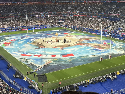 開幕戦時点で世界ランキング2位のフランスと4位のニュージーランド、素晴らしい攻防が80分続き、フランスが最後に連続トライを奪い、27対13でフランスが開幕戦を快勝で飾った。やはり本場での強豪チーム同士の戦いは見ごたえがある。「来てよかった」と実感した。